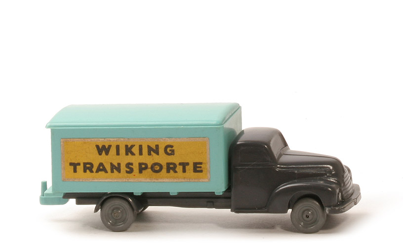 Achsen | Rollachser | Farbe Kabine u. Chassis | anthrazit | Kabinenboden | offen | Innenprägung | WM im Kreis | Bemalung Kabine | Scheinwerfer, Stoßstange | Koffer Farbe | türkis | Koffer Unterteil Farbe | türkis | Türen | türkis | Koffer Typ | Version 1a | Zughaken | im Kofferunterteil integriert | Beschriftung | Wiking Transporte (s. Foto) | Beschriftung Farben | gelb mit schwarzer Schrift | Beschriftung Art | Papieraufkleber | Räder | 10mm, ohne Profil, basaltgrau |