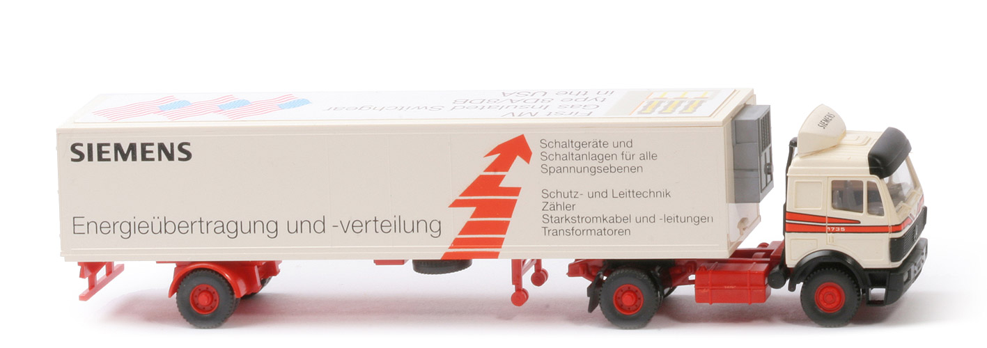 Mit Spoiler in weiß (mit Bedruckung "Siemens") und Sonnenblende in schwarz. Die Türen des Aufbaus sind nicht zu öffnen und mit Siemens-Werbung bedruckt: "Siemens - Mit Energie in die Zukunft". Der Koffer trägt vorne ein silbernes Kühlaggregat. Selten: hier mit Dachaufkleber "... in the USA".