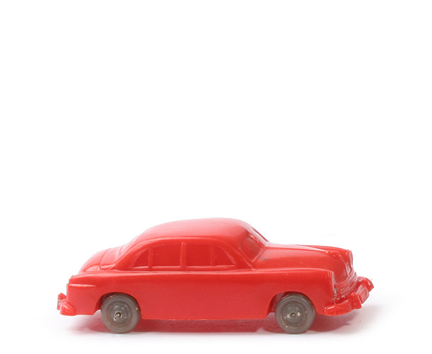 Achsen | Drahtachser | Farbe Karosserie | orangerot mit Melierung | Naht Unterseite | mit | Bodenprägung | ohne | Bemalung Scheinwerfer | silbern | Bemalung Kennzeichen vorne | ohne | Bemalung Stoßstange vorne | ohne | Bemalung Rückleuchten | ohne | Bemalung Kennzeichen hinten | rudimentär silbern | Bemalung Stoßstange hinten | rudimentär silbern | Räder Typ | Nabe flach | Räder Farbe | glasiges grau |