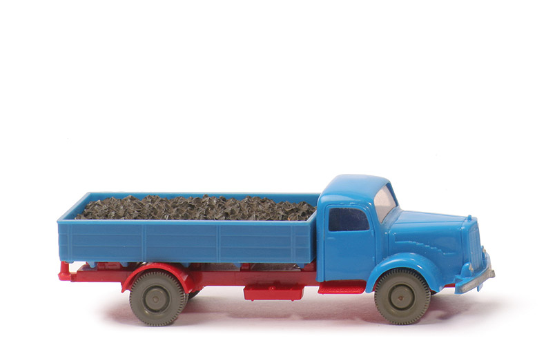 Farbe Kabine | himmelblau | Version Kabine | ohne Schlitz hinter Nrn-Schild | Blinker | ohne | Verglasung | getönt | Bemalung | Scheinwerfer, Stoßstange | Chassis Farbe | rot | Chassis Art | Version 3b | Achshalterungen | offen | Chassis Bodenprägung | WM (ohne Kreis) und Made in .. | Zughaken | integriert | Rückleuchten am Chassis | mit | Pritsche Art | Normpritsche | Pritschenseiten | waagerechte Gravuren | Rückleuchten | bündig an Rückwand | Kennzeichen | einteilig | Pritsche Farbe | lichtblau | Pritscheneinlage | ohne | Bemalung Rückleuchten | mit | Bemalung Kennzeichen | ohne | Ladung | Kohlenladung | Räder | 11 mm, glatt, hellgrau |