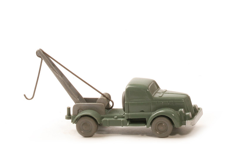 Achsen | Rollachser | Farbe Kabine | dunkelresedagrün | Farbe Chassis | dunkelresedagrün | Bemalung | Scheinwerfer, Stoßstange | Chassis | Version 1a | Achshalterungen | geschlossen | Bodenprägung | WM (ohne Kreis) | Reserverad | hinter Kabine | Kranaufbau | silbern | Kranausleger | silbern | Haken und Zugseil | einteilig Draht | Räder | 10 mm, mit Profil, staubgrau |