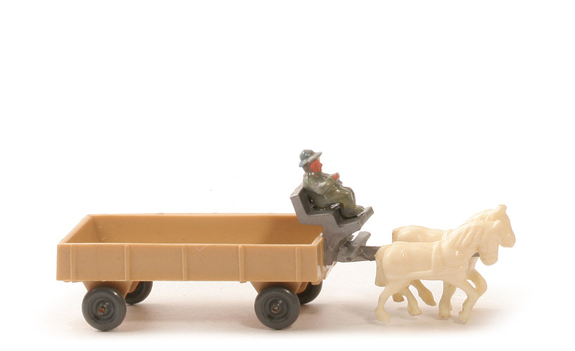 Räder | Drahtachser | Pritschentyp | ohne Querverbretterung | Farbe Pritsche | beige | Deichselrest | mit | Pritschenboden | mit Struktur | Zughaken | integriert, nach unten | Deichsel/Kutschbock | silbern | Quersteg Deichsel | mit | Farbe linkes Pferd | ca. cremeweiß | Farbe rechtes Pferd | ca. cremeweiß | Kutscher Typ | Hut | Kutscher Farbe | ca. dunkelresedagrünmetallic, Misch | Kutscher Bemalung | Gesicht, Hände | Räder | (dunkel)-basaltgrau |