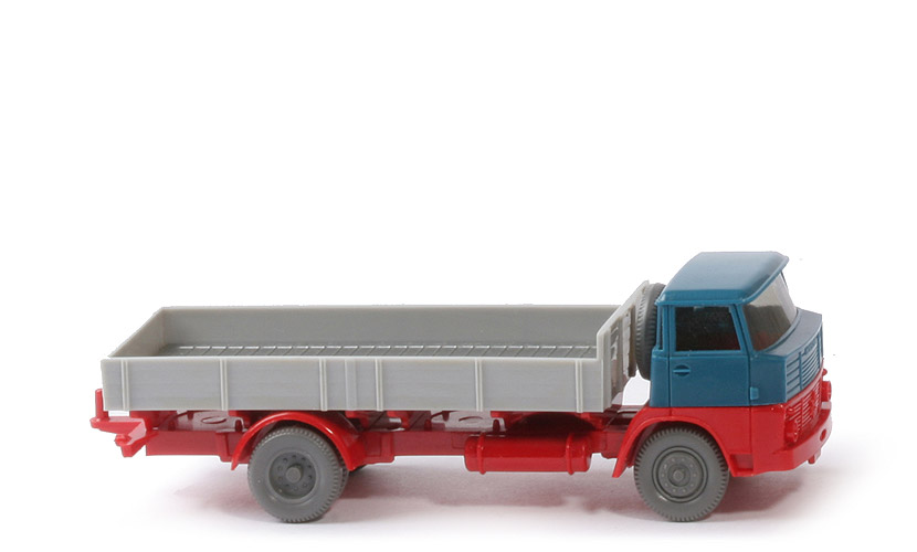 Wie das bekannte Serien-Modell, nur mit Pritsche in silbergrau. Die Kabine ist völlig unbemalt. Eventuell Resteverwertung eines Heimarbeiters. Keine Bastelspuren.
