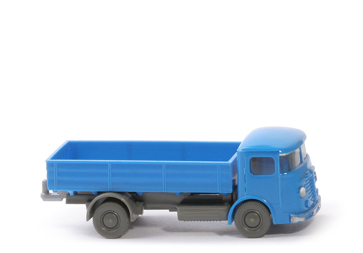 Kabine | himmelblau | Türgriffe | schräg | Inneneinrichtung | ohne | Blinker | ohne | Chassis Farbe | betongrau | Bodenprägung | WM | Rücklichtstangen | ohne | Zughaken | silber, eingesetzt | Befestigungspunkt Pritsche | ohne | Pritsche Ausführung | alt, Seiten Struktur | Pritsche Farbe | himmelblau | Pritscheneinlage | ohne | Räder | 10 mm, neu |