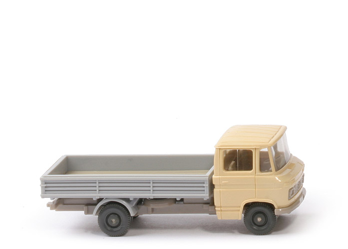Farbe Kabine | hellbeige | Scheibenwischer | ohne | Verglasung | klar | Inneneinrichtung | ca. graubeige | Lenkrad | mit | Chassisfarbe | graubeige | Platte zur Achshalterung | graubeige | Radlauf hinten | silbergrau | Bodenprägung Chassis | Wiking Germany | Pritsche | silbergrau | Bodenprägung Pritsche | 271 | Pritscheneinlage | ca. hellolivgrau | Bemalung | ohne | Räder | anthrazit, 9 mm |