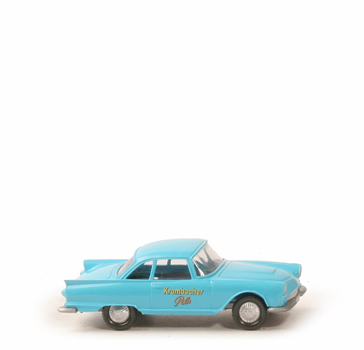| Farbe | adriablau | | Chassisfarbe | silbern | | Verglasung | stark getönt | | Bedruckung Scheinwerfer | silber | | Bedruckung Grill | silber | | Bedruckung Rückleuchten | ohne | | Bedruckung Türen | "Krombacher Pils" | | Bodenprägung | WIKING - neues Logo, Germany | | Räder | Riffelkappe gesilbert |