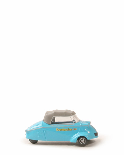 Karosserie | adriablau | Druck Seiten | "Krombacher Pils" | Verdeck | platingrau | Verglasung | klar | Inneneinrichtung | schwarz | Lenkrad | separiert, als Halbkreislenkrad | Kennzeichen vorne | Teil des Chassis, anthrazit | Chassis | anthrazit | Bodenprägung | neues WIKING-Logo, Germany | Räder | zweiteilig 4,4 mm Messerschmitt-Felge mit Steg |