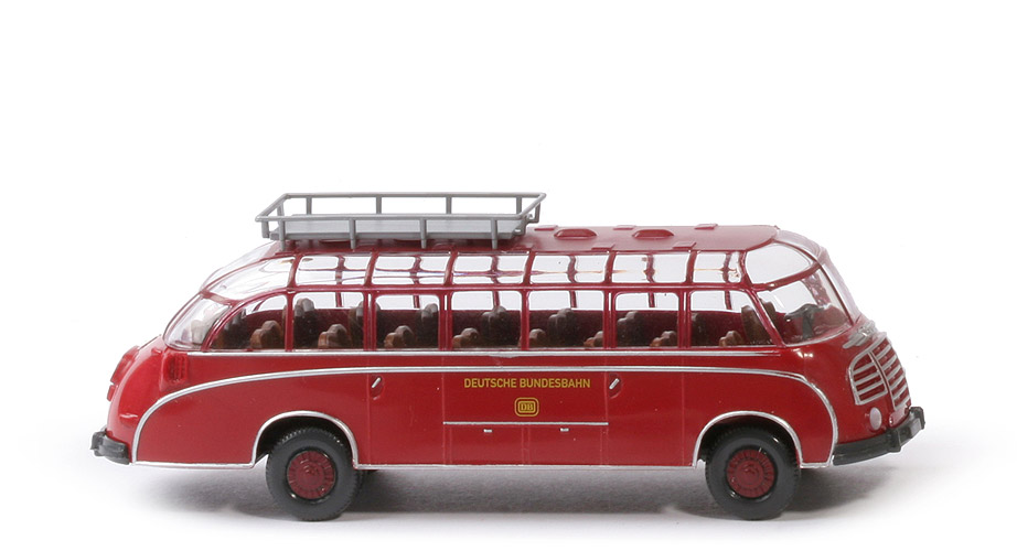 Die Fensterrahmen sind farblich abgesetzt. Mit silbernem Gepäckträger auf dem Dach. Im Beipack gibt es ein paar Koffer und Pakete. Zierleisten schön gesilbert. |