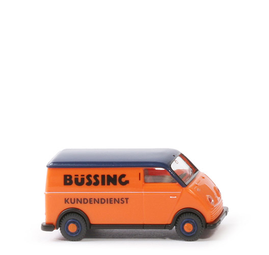Karosserie | rotorange | Schablonierung | stahlblau (s. Foto) | Verglasung | klar | Inneneinrichtung | ca. hellgelbgrau | Lenkrad | schwarz, 3-speichig | Scheinwerfer | klar transparent, eingesetzt | Bedruckung Fensterumrandung | vorne schwarz | weitere Bedruckung vorne | Zierlinien, "3=6", Logo, Zierlinie silbern | Bedruckung Seiten | Türgriffe, Zierlinien silbern, Haltegriffe schwarz | Bedruckung hinten | Türgriff, Zierlinie, Logo silbern | Bedruckung Kennzeichenleuchte | schwarz | Bedruckung Rückleuchten | rot | Beschriftung Seiten | "Büssing Kundendienst" | Beschriftung Heck | Büssing-Logo | Stoßstangen | eingesteckt, schwarz | Chassis | basal stahlblau, seitlich Kotflügel schwarz | Bodenprägung | neues Wiking-Logo | Räder Typ | 8 mm, 2-teilig, anthrazit | Felgen | Prägung "DKW", stahlblau, Radkappen rotorange |