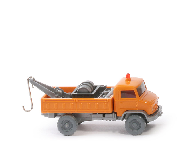 Farbe Kabine | gelborange | Version Kabine | geschlossen | Dach | mit einer Warnlichtaufnahme | Warnlicht | eins, groß, auf Sockel, orange transparent | Verglasung | stark getönt | Inneneinrichtung | ohne | Bedruckung Kabine | Scheinwerfer silbern | Chassis Farbe | silbern | eingesetzte Kardaneinheit | silbern | Chassis Typ | vor Hinterachse geschlossen | Bodenprägung | neues WIKING-Logo, Germany | Zughaken | Mikrohaken | Tanks, Luftbehälter | unten geschlossen | Reserverad | auf Chassis | Pritsche | gelborange | Ladung | Geräteeinsatz | Farben Geräteeinsatz | silbern | Ladung des hohen Stapelkastens | Tonne | Räder | 10 mm, grobstollig | Farbe Räder | ca. staubgrau |