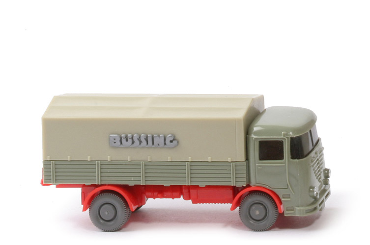 Mit BÜSSING-Schriftzug in silbern auf der Plane und Werbeeinlage. Sonst wie CS 616/3AA und GK 474/3k.