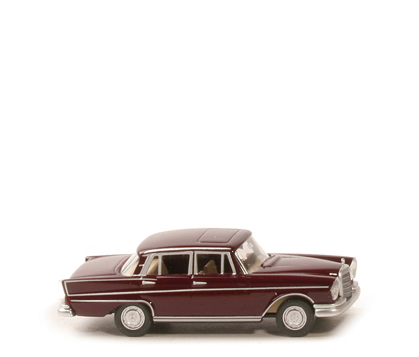 Farbe Karosserie | "bordeauxrot" klarlack | Schiebedach | mit | Scheibenwischer | plastisch, an Karosserie | Verglasung | klar | Innenspiegel | in Verglasung geprägt | Inneneinrichtung | ca. hellbeige | Lenkrad | separiert | Grill | silbern, eingesetzt, mit geprägtem Stern, schwarz hinterlegt | Scheinwerfer | klar transparent, eingesetzt | Rückleuchten | rot transparent eingesetzt | Stoßstangen | silbern, eingesetzt | Chassis Farbe | schwarz | Bodenprägung | neues WIKING-Logo, Germany | Räder Typ | 8 mm, anthrazit, Mercedes-Felgen | Radkappen | gesilbert |