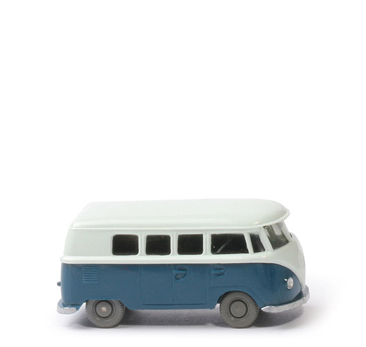| Farbe Karosserie oben | papyrusweiß | | Farbe Karosserie unten | dunkelazurblau | | Heckscheibe | klein | | Chassis | Teil des Karosserieunterteils | | Chassis Version | Typ A Nest 1 | | Bodenprägung | Made in Germany, WM | | Rückleuchten | gering erhaben | | Mittelholm | oben gerade | | Verglasung | Typ 3, getönt, eine Bohrung | | Inneneinrichtung | ohne | | Bemalung Scheinwerfer | silbern | | Bemalung VW-Emblem | ohne | | Bemalung Stoßstangen | silbern | | Bemalung Kennzeichen hinten | ohne | | Bemalung Rückleuchten | rot | | Räder | 8 mm, ca. staubgrau, Nabe flach |