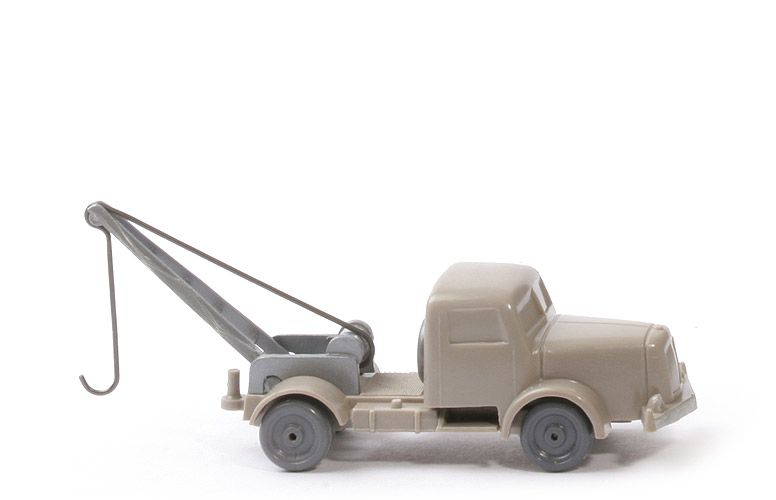 Achsen | Rollachser | Farbe Kabine | braunelfenbein | Farbe Chassis | braunelfenbein | Bemalung | Scheinwerfer, Stoßstange | Chassis | Version 1a | Achshalterungen | geschlossen | Bodenprägung | WM (ohne Kreis) | Reserverad | hinter Kabine | Kranaufbau | silbern | Kranausleger | silbern | Haken und Zugseil | einteilig Draht | Räder | ohne Profil basaltgrau |