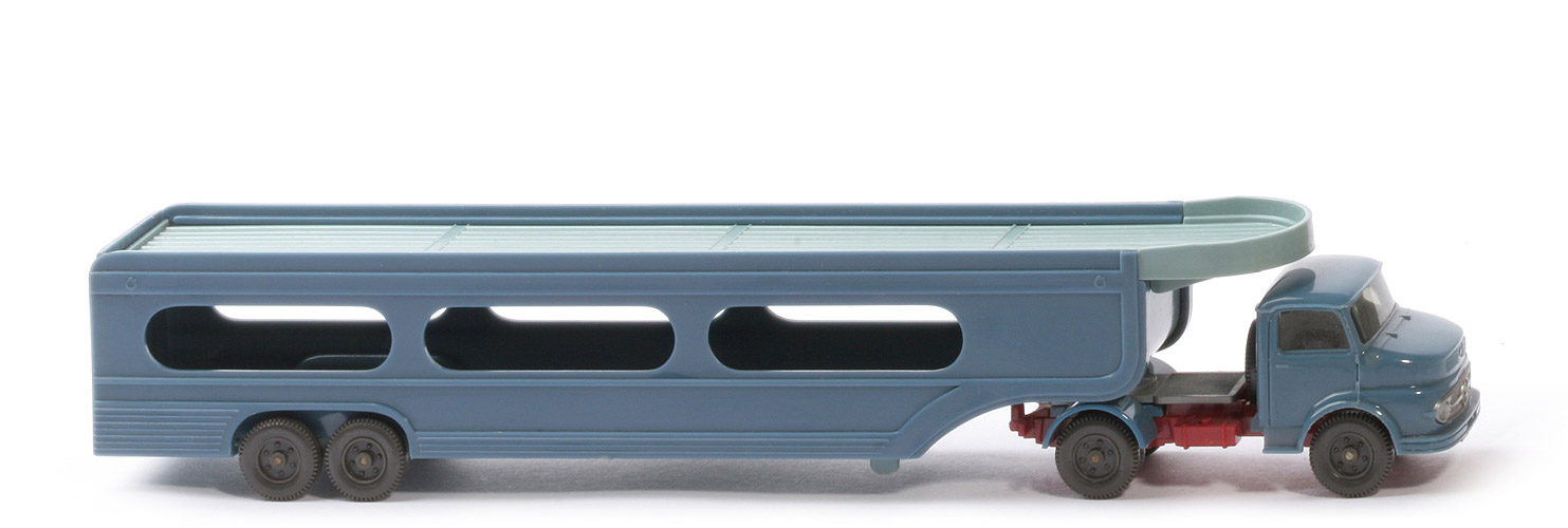 | Zugmaschine | Kabine | mattgraublau | Lüfter | ohne - Dach glatt | Verstärkung hinter Nrn-Schild | mit | Blinker | neben Scheinwerfern | Verglasung | getönt | Inneneinrichtung | ohne | Bemalung | ohne | Farbe Chassis | hellbraunrot | Bodenprägung | Wiking Germany | Radlauf hinten | ca. mattgraublau | Sattelpfanne | neu, für dünnen Bolzen | Reserverad | hinter Kabine | Räder | 11 mm, 6-Loch. Profil feinb, anthrazit | | Auflieger | Seiten | mattgraublau | Mittelsegment | mattgraublau | Klappe | mattgraublau | Platte für Achshalterung | mattgraublau | hier Bodenprägung | WM ohne Kreis | weitere Bodenprägung Chassis | WIKING, 58, Germany | Königsbolzen | silbern eingesetzt, Pilzform (!), auf runder Erhebung | hinteres Kennzeichen | unbemalt | Räder | 11 mm, 6-Loch. Profil fein, anthrazit |