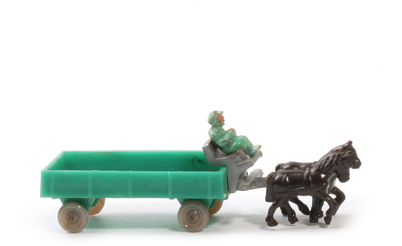 Räder | Drahtachser | Pritschentyp | ohne Querverbretterung | Farbe Pritsche | grün | Deichselrest | mit | Pritschenboden | glatt | Zughaken | ohne | Deichsel/Kutschbock | silbern | Quersteg Deichsel | mit | Farbe linkes Pferd | schokobraun | Farbe rechtes Pferd | schokobraun | Kutscher Typ | Mütze | Kutscher Farbe | mischfarbend grün (!) | Kutscher Bemalung | Gesicht, Hände | Räder | transparent hellgrau |