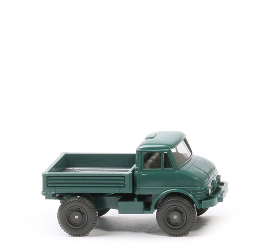 Farbe Kabine | patinagrün | Verglasung | klar | Inneneinrichtung | ca. basaltgrau, Sitze glatt | Lenkrad | ohne | Chassis Farbe | patinagrün | Bodenprägung | 37 g, Wiking, Germany | Kardanelement Farbe | patinagrün | Reserverad | über Chassis | Pritsche | patinagrün | Pritscheneinlage Typ | 6 Längsstreifen und trapezförmige Gravur | Pritscheneinlage Farbe | silbern | Bemalung | nur Scheinwerfer | Räder | 11 mm, 6-Loch | Farbe Räder | anthrazit |