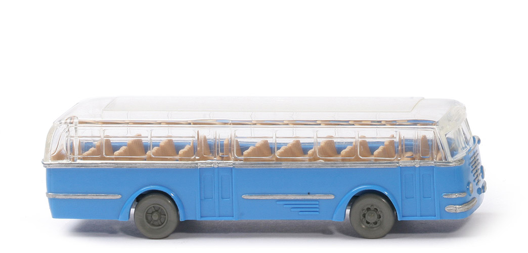 | | Karosserie | | Typ Karosserie | Typ 2 | | Farbe | helles signalblau | | Scheinwerfer | konkav | | Grill | neu | | unterer Türabschluss | bündig mit Karosserie | | angedeutete Fenster in Türen | eckig | | Heck | Version 4 | | Heckbeschriftung BÜSSING | fett | | Rückleuchten | mit, 3er Kaskade | | Nummernschild hinten | mit | | Bodenprägung | WM im Kreis, klein | | Chassishalterungen | ohne | | | Dach | | Typ Dach | glatt, ohne Lüfter | | Fenster | gerundet | | | Inneneinrichtung | | Typ Inneneinrichtung | Sitze grob | | Farbe | beige | | Lenkrad | an Karosserie | | Lenkrad Farbe | ca. basaltgrau | | | Chassis | | Bodengruppe | Typ 3 | | Chassis Farbe | silber | | | Räder | | Typ | Trilex | | Farbe | ca. basaltgrau |