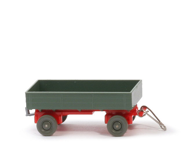| | Pritsche | | Pritsche Farbe | dunkelresedagrün | | Pritschenseiten | mit Struktur | | Pritscheneinlage | ohne | | Kennzeichen hinten | einteilig | | | Chassis | | Chassis Variante | ähnlich Typ 4 | | Chassis Farbe | orangerot | | Achshalterungen | offen | | Drehschemel | eingesteckt | | Bodenprägung Drehschemel | ohne | | Bodenprägung Chassis | Germany | | Zughaken | angeklebt | | | weitere Details | | Deichsel | Metall, kurz | | Bemalung Rückleuchten | ohne | | Bemalung Kennzeichen | ohne | | Räder | 10 mm, staubgrau, neuere Ausführung |