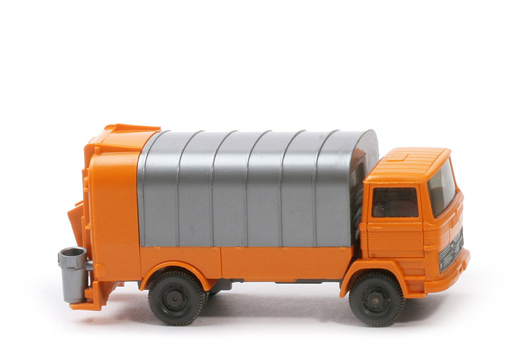 Mit KUKA. Mit Aussparung vor der Trittfläche, auf der die Mülltonnen stehen (siehe Foto), und breiter Hahn am Druckbehälter. Chassis ~basaltgrau. |