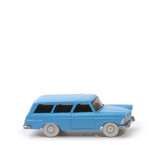 | Farbe | himmelblau | | Verglasung | getönt | | Inneneinrichtung | ohne | | Bemalung Scheinwerfer | silber | | Bemalung Grill | silber | | Bemalung Blinker | orange | | Bemalung Rückleuchten | rot | | Chassisfarbe | silbern | | Bodenprägung | WM und neues WIKING-Logo | | Räder | 8 mm, Nabe glatt, altweiß |