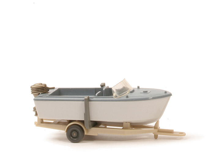 | | Boot | | Bootoberseite | graublau | | Vordersitze | mit Verbindungssteg ohne Nippel | | Windschutzscheibe | flach (ca. 6 mm hoch) | | Lenkrad | ca. hellelfenbein, 2-speichig | | Fußraum (Deck) | silbern | | hier Prägung | WM | | Außenborder | goldmetallic | | Rumpf | altweiß | | | Anhänger | | Farbe | ca. hellelfenbein | | Version | Typ 2 (mit Schlitz für Kunststoffhalterung) | | Nestkennung | "2" | | Bodenprägung | Wiking Germany | | Befestigung Boot | per Kunststoffhalterung - basaltgrau | | Räder | anthrazit, Nabe glatt |