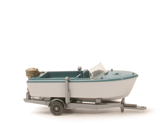 | Boot | Bootoberseite | diamantblau | Vordersitze | mit Verbindungssteg ohne Nippel | Windschutzscheibe | flach (ca. 6 mm hoch) | Lenkrad | ca. lichtgrau, 3-speichig | Fußraum (Deck) | silbern | hier Prägung | WM | Außenborder | goldmetallic | Rumpf | (grau-) weiß | | Anhänger | Farbe | silbern | Version | Typ 2 (mit Schlitz für Kunststoffhalterung) | Bodenprägung | Wiking Germany | Befestigung Boot | per Kunststoffhalterung - silbern | Räder | anthrazit, Nabe glatt |