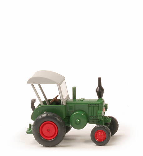 Aufbau | helles laubgrün | Unterbau-Teil m. Scheinwerfern | helles laubgrün | Ansaugrohr | integriert kurz | Auspuffrohr | schwarz | Scheinwerfer | gesilbert | Fahrersitz-Teil m. Lenkstange | schwarz | Lenkrad | ca. ockerbraun | Dach | dunkles achatgrau | hierin Frontscheibe | klar transparent | Fahrer | ohne | Bodenprägung | neues WIKING-Logo | Zughaken | grazil | Räder Farbe | anthrazit | Räder vorne | zweiteilig, Felgen rot | Räder hinten | zweiteilig, Felgen rot | Frontdruck | Lanz Bulldog gold auf rot |