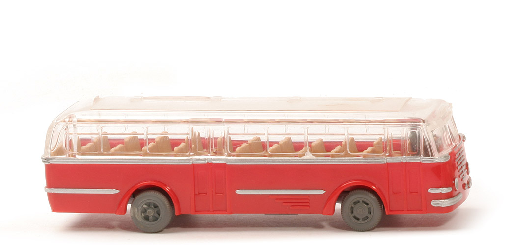 | | Karosserie | | Typ Karosserie | Typ 2 | | Farbe | orangerot | | Scheinwerfer | konkav | | Grill | neu | | unterer Türabschluss | bündig mit Karosserie | | angedeutete Fenster in Türen | eckig | | Heck | Version 5 | | Heckbeschriftung BÜSSING | ohne | | Rückleuchten | mit, 2-stufig | | Nummernschild hinten | mit | | Bodenprägung | WM im Kreis, klein | | Chassishalterungen | ohne | | | Dach | | Typ Dach | mattiert, 4 Lüfter | | Fenster | gerundet | | | Inneneinrichtung | | Typ Inneneinrichtung | Sitze fein | | Farbe | beige | | Lenkrad | am Armaturenbrett | | Lenkrad Farbe | ca. basaltgrau | | Fahrer | dunkles basaltgrau, mit Beinen | | | Chassis | | Bodengruppe | Typ 3 | | Chassis Farbe | silber | | | Räder | | Typ | Trilex Profil | | Farbe | ca. staubgrau |