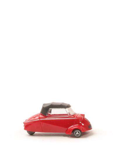 Karosserie | rot | Verdeck | anthrazit | Verglasung | klar | Inneneinrichtung | ockerbraun | Lenkrad | separiert, als Halbkreislenkrad | Kennzeichen vorne | Teil des Chassis, anthrazit | Chassis | anthrazit | Bodenprägung | ohne (!) | Räder | zweiteilig 4,4 mm Messerschmitt-Felge mit Steg |