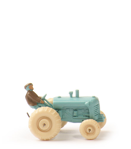Räder | Drahtachser | Aufbau | ca. helladriablau | Zughaken | 0,7 mm, Draht, schwarz | Bemalung Scheinwerfer | ohne | Fahrer | Rücken gerundet | Bemalung Fahrer | Gesicht, Hände, Jacke, Haare | Farbe Räder | creme | Achsen | 0,7 mm, schwarz | Gewicht | 4,0 gr |