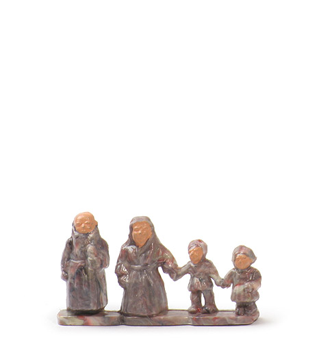 Figurenzahl | 4 | Farbe | mischbunt | Bemalung | Gesichter und Hände | | Figuren von links nach rechts | Noah selbst | freistehend, im Mantel, Glatze | des Noah Weib | gegürtetes Gewand, linke Hand dem Kinde ausgestreckt | des Noah Knabe | an des Mutters und der Schwester (?!) Hand | des Noah Tochter (?!) | an des Bruders Hand | Herstellerzeichen | ohne |