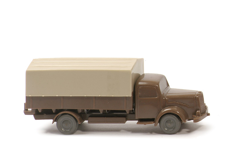 Achsen | Rollachser | Farbe Kabine u. Chassis | blassbraun | Verstärkung Trittbretter | mit | Bemalung Kabine | ohne | Version Chassis | Version 1b | Chassis Farbe | blassbraun | Bodenprägung | WM im Kreis | Pritsche | Seiten glatt | Farbe Pritsche | blassbraun | Zughaken | nach oben | Zapfen | Flachzapfen | Kennzeichen | unbemalt | Befestigung Pritsche | geklebt | Plane | hellgelbgrau | Räder | 10mm, mit Profil |