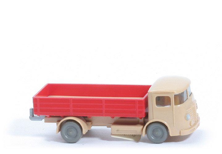 Kabine | beige | Türgriffe | schräg | Inneneinrichtung | ohne | Blinker | ohne | Chassis Farbe | beige | Bodenprägung | ohne | Rücklichtstangen | ohne | Zughaken | silber, eingesetzt | Befestigungspunkt Pritsche | ohne | Pritsche Art | Normpritsche | Pritschenseiten | waagerechte Gravuren | Rückleuchten | bündig mit Rückwand | Kennzeichen | zweiteilig | Pritsche Farbe | rot | Pritscheneinlage | hellbeige | Räder | 10mm, alt |