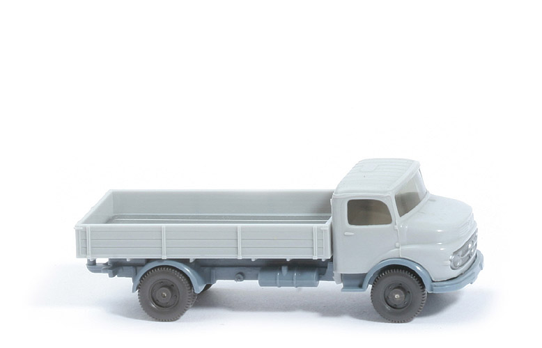 Version Kabine | mit Dachlüfter, Stoßstange separat | Farbe Kabine | silbergrau | Verglasung | getönt | Grill | silbern eingesetzt | Verglasung | getönt | Bemalung | ohne | Inneneinrichtung | ohne | Kombination Chassis/Pritsche | Version 4 | Chassis Art | Typ 3 (wie folgt) | Kotflügel hinten | stark | Pritschenabstützung | stegartig | Reserverad | ohne, hierfür Steg | Aufnahme für Inneneinrichtung | mit | Bodenprägungen | Wiking, 43k, Made in Germany | Chassisfarbe | blaugrau | Pritsche Art | Typ 2 (wie folgt) | Pritschenseiten | gerade, feine Struktur | Pritschenboden | 6 schmale Quertraversen | Pritsche Farbe | silbergrau | Pritscheneinlage | silbern | Räder | 11mm, 6 Loch |
