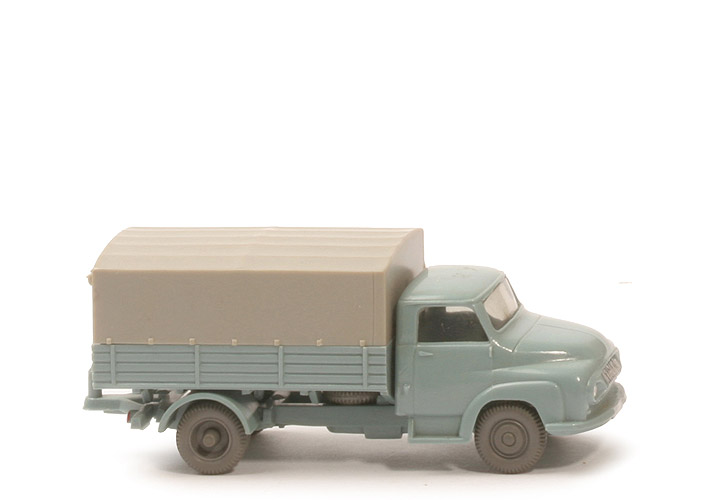 Kabine | grünblau | Verglasung | getönt | Inneneinrichtung | ohne | Bemalung Scheinwerfer | silber | Bemalung Grill | silber | Bemalung Kennzeichen vorne | silber | Farbe Pritsche | grünblau | Pritscheneinlage | ohne | Chassis Typ | im Bereich der Hinterachse offen | Chassis Farbe | grünblau | Bodenprägung | WM | Bemalung Rückleuchten | rot | Bemalung Kennzeichen hinten | silber | Reserverad | auf Chassis | Plane | ca. hellolivgrau | Räder | 10 mm, hellgrau |