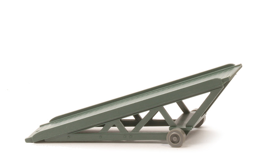 | Rampe | graugrün | | hier Bodenprägung | WM (ohne Kreis), WIKING | | Seitengerüst | graugrün | | untere Quertraverse | graugrün | | Räder | Walzenräder |