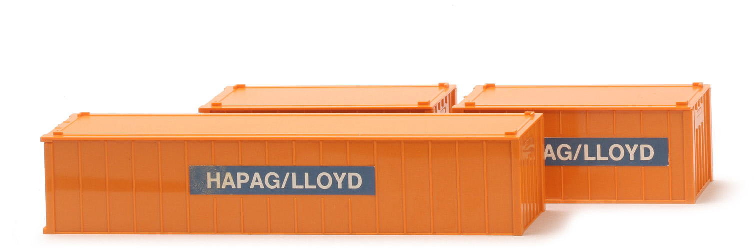 | Inhalt | 3 Alu-Container | | | Container 1 | | Typ | Alu-Container 40 ft | | Farbe | gelborange | | Beschriftung | Hapag-Lloyd | | Beschriftung Art | 7 Felder, Papieraufkleber | | | Container 2 | | Typ | Alu-Container 20 ft | | Farbe | gelborange | | Beschriftung | Hapag-Lloyd | | Beschriftung Art | 7 Felder, Papieraufkleber | | | Container 3 | | Typ | Alu-Container 20 ft | | Farbe | gelborange | | Beschriftung | Hapag-Lloyd | | Beschriftung Art | 7 Felder, Papieraufkleber |