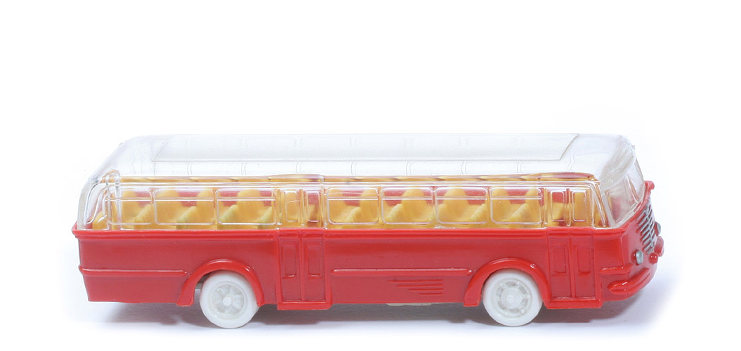 | | Karosserie | | Typ Karosserie | Typ 1 | | Farbe | blassrot | | Scheinwerfer | konvex | | Grill | alt | | unterer Türabschluss | tiefer als Karosserie | | angedeutete Fenster in Türen | gerundet | | Heck | Version 2 | | Heckbeschriftung BÜSSING | dünn, die beiden "S" größer als Restschrift | | Rückleuchten | ohne | | Nummernschild hinten | ohne | | Bodenprägung | ohne | | Chassishalterungen | eckig | | | Dach | | Typ Dach | glatt, ohne Lüfter | | Fenster | gerundet | | | Inneneinrichtung | | Typ Inneneinrichtung | Sitze grob | | Farbe | gelb | | Lenkrad | an Karosserie, 2-speichig | | Lenkrad Farbe | weiß | | Fahrer | ohne | | | Chassis | | Bodengruppe | Typ 1 | | Chassis Farbe | hellgelbgrau | | | Räder | | Typ | Trilex | | Farbe | weiß |