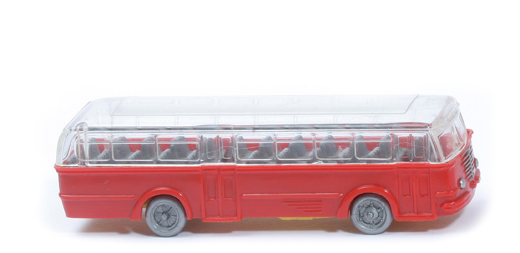 | | Karosserie | | Typ Karosserie | Typ 1 | | Farbe | rot | | Scheinwerfer | konvex | | Grill | alt | | unterer Türabschluss | tiefer als Karosserie | | angedeutete Fenster in Türen | gerundet | | Heck | Version 1 | | Heckbeschriftung BÜSSING | dünn, die beiden "S" so groß wie Restschrift | | Rückleuchten | ohne | | Nummernschild hinten | ohne | | Bodenprägung | ohne | | Chassishalterungen | eckig | | | Dach | | Typ Dach | glatt, ohne Lüfter | | Fenster | gerundet | | | Inneneinrichtung | | Typ Inneneinrichtung | Sitze grob | | Farbe | glasiges grau | | Lenkrad | an Karosserie, hier leider gelöst | | Lenkrad Farbe | weiß | | Fahrer | ohne | | | Chassis | | Bodengruppe | Typ 1 | | Chassis Farbe | gelb | | | Räder | | Typ | Trilex | | Farbe | silber (!) |