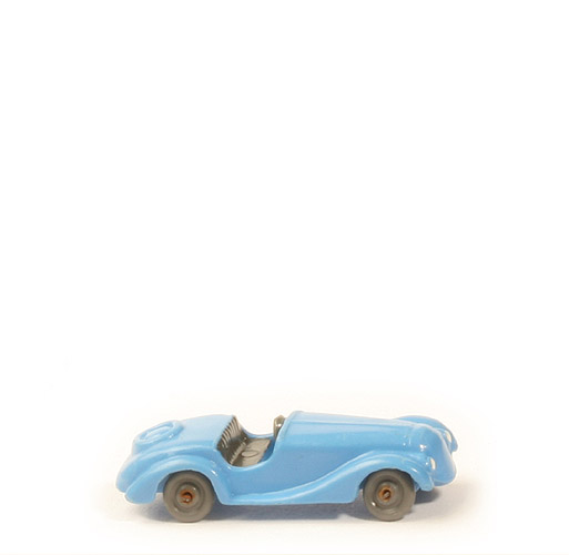 | Achsen | Drahtachser | | Farbe Karosserie | helles signalblau | | Kühlergrill | glatt | | Lenkrad | separat eingeklebt | | Farbe Lenkrad | ca. staubgrau | | Sitze | Lack dunkles grau | | Sitzfläche | glatt | | Bodenprägung | WM (ohne Kreis), Made in Germany | | Bemalung Scheinwerfer | weiß | | Bemalung Kennzeichen hinten | weiß | | Räder Typ | Nabe flach | | Räder Farbe | ca. staubgrau |