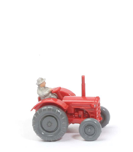 | Räder | Rollachser | | Aufbau | rot | | Bemalung Scheinwerfer | silber | | Fahrer | mischgrau | | Bemalung Fahrer | Gesicht, Hände | | Räder vorn | ohne Profil, 6 Loch | | Räder hinten | einteilig, 8-Loch | | Farbe Räder | ca. staubgrau | | Zughaken | kurz |