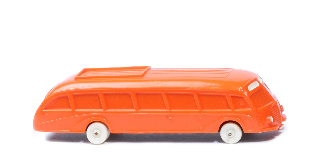 | Achsen | Drahtachser | | Farbe Aufbau | (leucht)orange | | Fenster | geschlossen | | Gepäckbrücke | integriert | | Bemalung Front | Zielschilder, Kennzeichen, Scheinwerfer weiß | | Bemalung Radkästen | ohne | | Bemalung Heck | Kennzeichen weiß | | Rückleuchte | ohne | | Reserverad | ohne | | Beschriftung | ohne | | Chassis | mischbraun | | Bodenprägung | WM | | Räder | weiß |
