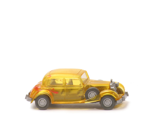 Farbe | gelb transparent, rote Schlieren | Grill | silbern eingesetzt | Struktur Grill | mit | Mercedes Stern | mit Innengravur | Reserveräder | auf vorderen Kotflügeln | Inneneinrichtung | ca. lichtgrau | Lenkrad | integriert | Bemalung Rückleuchten | ohne | Chassisfarbe | silbern | Bodenprägung | Mercedes 260D/WIKING/Berlin-W | Räder | 9 mm | Radkappen | silbern eingesetzt | Rolldach | farblich nicht abgesetzt |