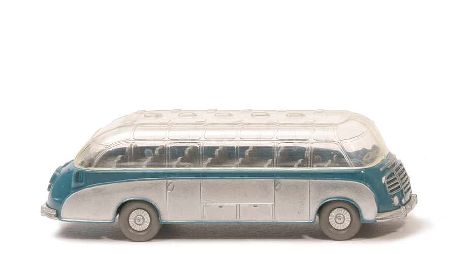 Bei diesem Modell wurde wohl die Schablonierung zumindest der Fahrerseite geschickt nachgebessert. Vermutlich wurde das Dach bei allen azurblauen Setras original verklebt. |