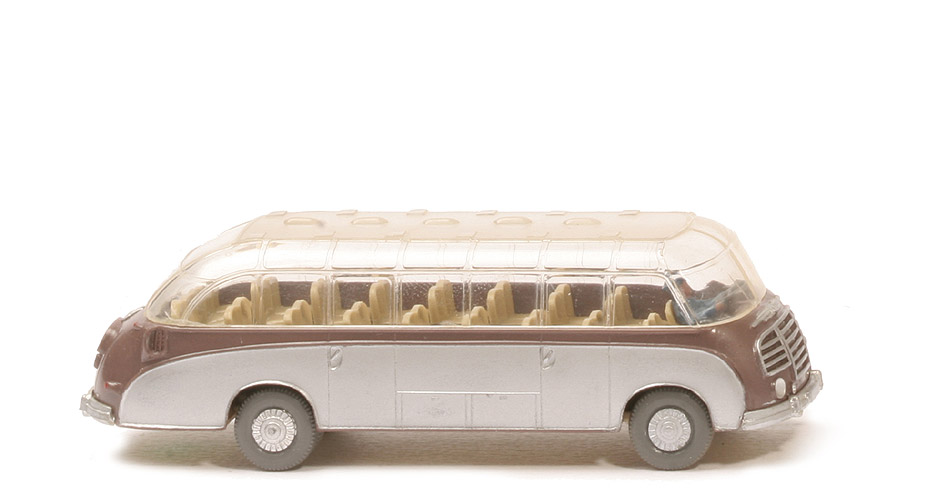 Karosserie Typ | Serie | Karosserie Farbe | braunmetallic | Schlitze für Dach | lang und schmal | Armaturenbrett | trapezförmig | Gestaltung Zierline Front | mit Punkt, gesilbert | Boden Fahrgastraum | mit Struktur | Gestaltung Seite | Schablonierung silber | Fahrersitz Farbe | grünbeige | Sitzreihen | grünbeige, gesteckt | Fahrer Typ | klein | Fahrer Farbe | blaumetallic | Lenkrad Typ | drei Speichen | Lenkrad Farbe | basaltgrau | Dach Befestigung | geklebt | Dach Gestaltung oben | mattiert | Dach Typ Haltenasen | lang und dünn | Chassis Farbe | grünbeige | Chassis Typ | Typ 3a | Achshalterungen hierbei | offen | Bodenprägung hierbei | WM ohne Kreis | Bemalung Hauptscheinwerfer | silber | Bemalung Nebelscheinwerfer | silber | Bemalung Grill und Zierlinie | silber | Bemalung Stoßstangen | silber | Bemalung Rückleuchten | rot | Bemalung Blinker hinten | rot | Bemalung Kennzeichen hinten | silber | Bemalung 3 Zierlinien hinten | silber | Bemalung Lüfter | ohne | Räder Typ | Trilex Bus, mit Profil | Räder Ausführung | staubgrau, Felgen gesilbert |