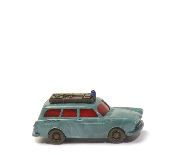| Farbe | grünblau mit Schlieren | | Haube | eckig | | Blinker vorne | umlaufend | | Verglasung | rot durchgefärbt | | Inneneinrichtung | ohne | | Dachaufbau | wie DRK, basaltgrau | | Blaulicht | auf Dachaufbau | | Bemalung Scheinwerfer | silbern | | Bemalung Rückleuchten | ohne | | Chassisfarbe | graublau | | Chassis Typ | Version 3 | | Bodenprägung | Wiking, Germany, VW 1500 Variant | | Verstärkung Stoßstange | mit | | Haltestreben Stoßstange | Variant immer zwei | | Stoßstangenhörnchen | ohne | | Räder Typ | Nabe glatt | | Räder Farbe | anthrazit |