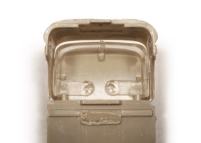 Bei der Version 3 war die Verglasung nun nach oben geschlossen - nur nach hinten war das Bauteil offen. Der Führungsdorn für die früheren Verglasungen mittig vorne am Dach war nun ebenso wie die 2 kleinen Erhebungen zur Positionierung verschwunden. Hinten wurde die Verglasung weiterhin mit zwei längeren Stempeln gehalten.