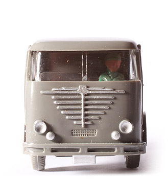 In der weiteren Produktionszeit bis 1968 taucht kein Fahrer mehr auf - auch nicht bei den Neuauflagen. Teilweise wurde diese Tatsache durch eine sehr starke Tönung der Verglasung schamhaft verdeckt. zeige die Modelle mit diesem Detail |
