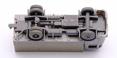 Der Aufbau wurde mit dem Chassis anfangs über kleine Klebeflächen vorne und hinten unter der Pritsche verbunden. Vor der vorderen Klebeaufnahme war anfangs hinter dem Fahrerhaus ein freier Raum.